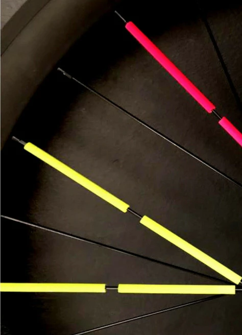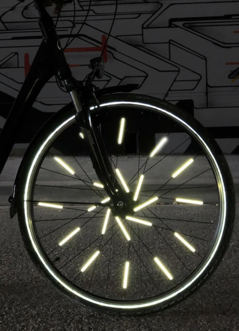 Visibilité au top : à vélo, on ne le répétera jamais assez, il faut être visible ! Ces petits tubes de 8 cm, par la rotation de la roue, permettent de vous signaler aux autres usagers de la route. Avec des micros billes de verre, les réflecteurs renvoient la lumière dans la direction d’où elle provient. Visibilité 360° assurée.
