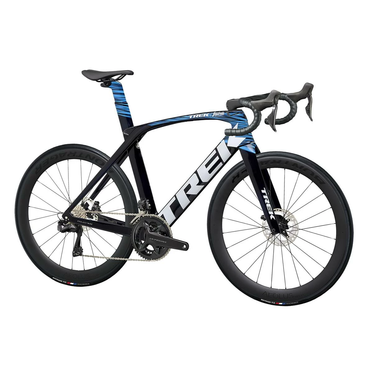 Ce vélo haut de gamme est un condensé de technologies, notamment avec un cadre en OCLV Carbon Série 800 le plus léger jamais produit par TREK avec ses formes de tube aérodynamique Kammtail Virtual Foil, la technologie réglable IsoSpeed au niveau du tube horizontal pour le confort et l’acheminement invisible des câbles. Une toute nouvelle transmission électronique sans fil Shimano Ultegra Di2 2×12 et des freins à disque hydrauliques à fixation Flat-Mount, des roues en carbone Bontrager Aeolus Pro 51 en carbone Tubeless Ready et une potence et un cintre aérodynamiques réglables.
